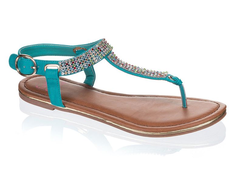 Für Rock-Chicks: Zehensandalen mit goldenen Nieten und glitzernden Strass-Verzierungen sind der Star auf jedem Sommerfestival. Für Romantikerinnen: Ein Eye-Catcher für Spaziergänge in der lauen Sommernacht sind Sandalen mit schimmernden Schmucksteinen.